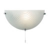 Glass semi circle wall light offering an upward direction of light. Decorative swirl detail to the opal glass shade, complete with a pull cord switch. Dimmable and suitable for use with LED lamps. Matching ceiling light available