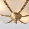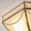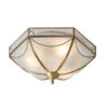 The Russell 3 light flush ceiling fitting has a traditional style and combines frosted glass and a solid brass trim. Dimmable and compatible with LED lamps