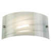 This wall light has a patterned white striped glass shade and satin chrome effect plate back. Both dimmable and suitable for use with LED lamps. Also available in black