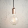 Create that cool urban look with this industrial pendant. Simple in construction with a single smooth copper plated lamp holder suspended from height adjustable black fabric flex.