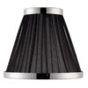 This 8 inch Suffolk shade is crafted from a black pleated organza effect fabric, with a polished nickel trim