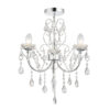 The Tabitha 3 light semi flush ceiling fitting is finished in a chrome effect plate with clear crystal glass detail and droplets. IP44 rated so suitable for use in the bathroom, dimmable and suitable for use with LED lamps. Matching items available