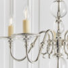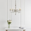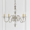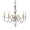 The 5 light Tilburg nickel is a classic design based on the Flemish chandelier, modernised with crystal spheres and glass bobeches. Matching items available