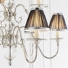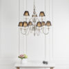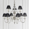 The 9 light Tilburg nickel is a classic design based on the Flemish chandelier, modernised with crystal spheres and glass bobeches. It comes teamed with beautiful black shades with a matching polished nickel trim. Matching items available