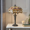 The small Vesta table light incorporates scalloped edges and striking colours for a dramatic look. Teamed with a traditional dark bronze effect fitting and compatible with LED lamps. Matching items available