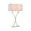 The Vienna table light combines simplicity with elegance. Finished in polished nickel with sweeping curved stems and topped with a beige organza effect shade. Matching items available