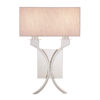 The Vienna wall light combines simplicity with elegance. Finished in polished nickel with sweeping curved stems and topped with a beige organza effect shade. Matching items available.