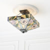 The Willow semi flush ceiling light incorporates the famous Mackintosh style rose, with subtle pretty colours. Complemented by a dark bronze fitting, dimmable and compatible with LED lamps. Matching items available